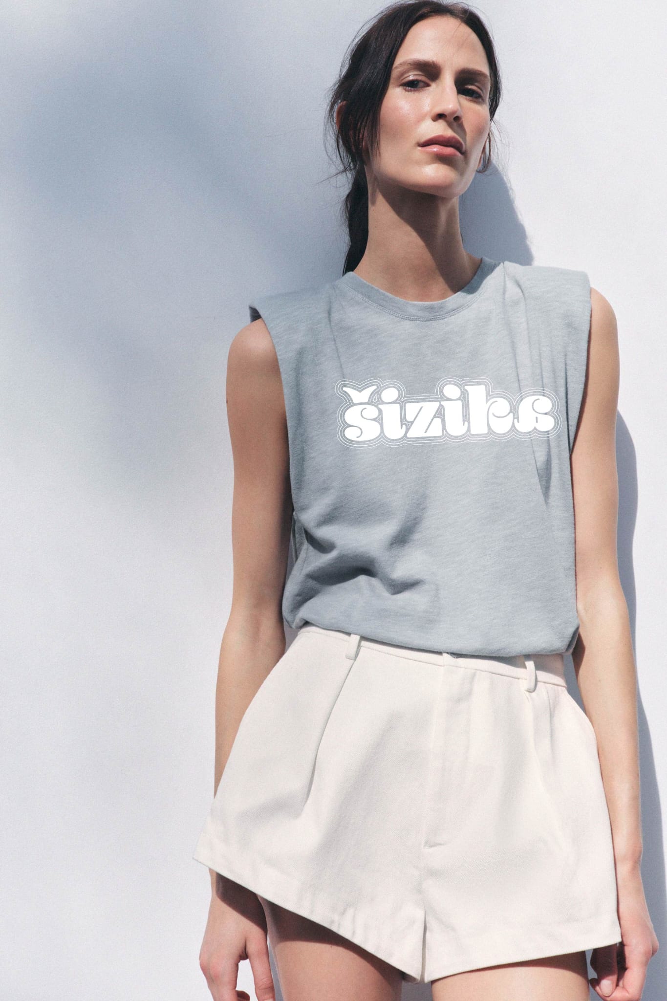 Bijeli outline na crnoj. Minimalistički, čist. Ista retro tipografija, ali suptilnija. Muscle tee, premium pamuk.